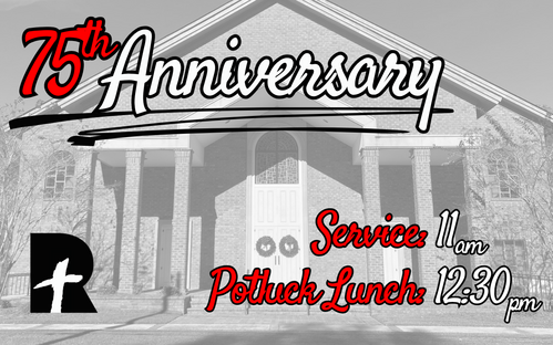 On Sunday November 2nd we will be celebrating 75 years of our church! We have a special anniversary service planned, with a Potluck style church lunch following the service. We are so excited to join together and worship God for what he has done in our church.